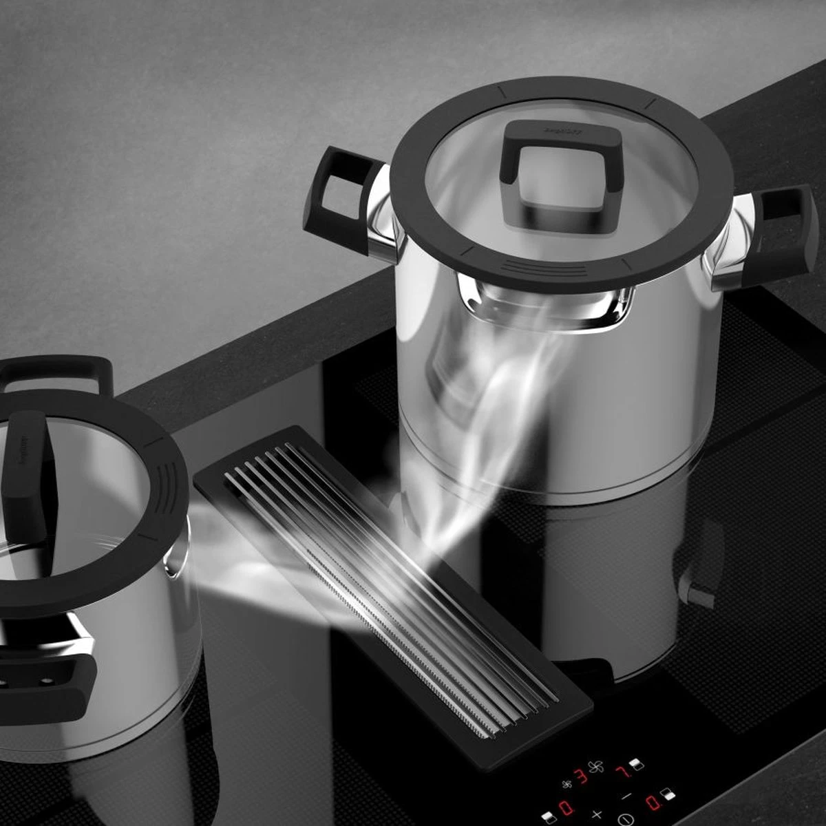 - Glazen deksel met geïntegreerde luchtkanalen voor downdraft systeem