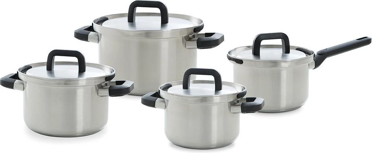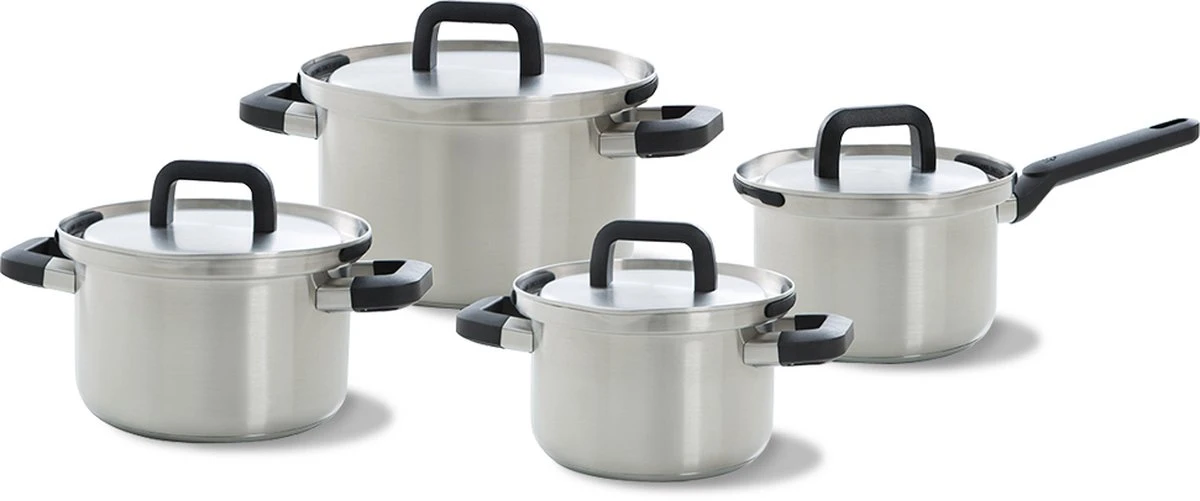 Na gebruik kunnen de pannen gereinigd worden in de vaatwasser. Daarnaast zijn ze goed stapelbaar vanwege de hooggeplaatste grepen; zo bespaar je ruimte in de keukenkast. Extra voordeel is dat deze pannenset inductie geschikt is