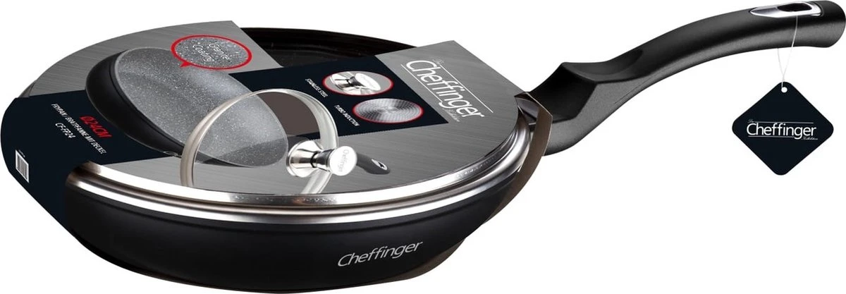 Met deze koekenpan kunt u de heerlijkste gerechten bereiden. De pan is gemaakt van gesmeed aluminium en heeft een 3-laagse marmercoating. Hij kan worden gebruikt voor alle soorten warmtebronnen. Het bijgeleverde deksel is gemaakt van gehard glas en heeft een knop van roestvrij staal.
